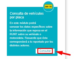 - En el menú de opciones izquierdo, ubica la opción de “Consulta de vehículos por placa” y haz clic sobre ella.