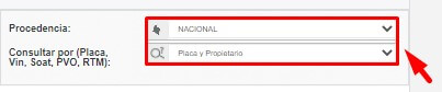 - Indica la procedencia del vehículo y selecciona el tipo de consulta que vas a realizar.